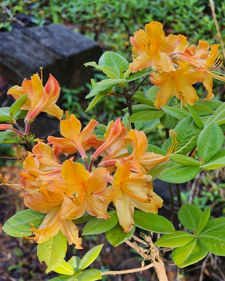 This showy azalea has red buds that open to gold and orange shades with red stamens. At maturity it will reach 8-10 feet in height and 5-6 feet in width.